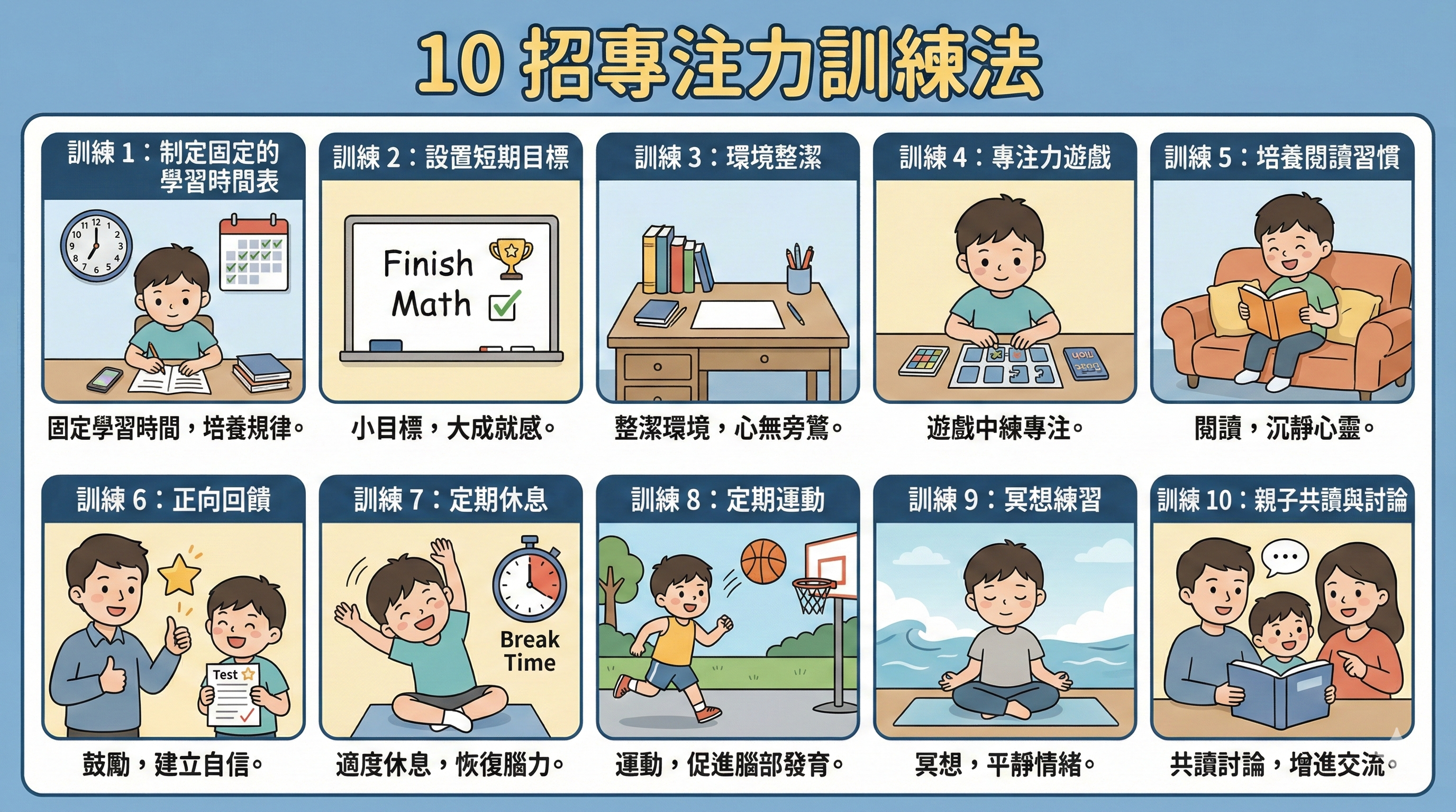 這 10 招能幫助家長從日常生活中,循序漸進地替孩子建立專注體質: